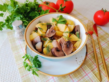 Тушеная картошка с грибами в мультиварке - универсальное блюдо для ужина. Быстрое приготовление практически без участия хозяйки. Спасибо за рецепт.