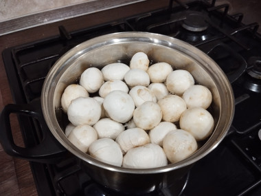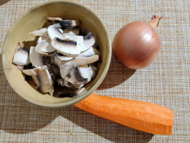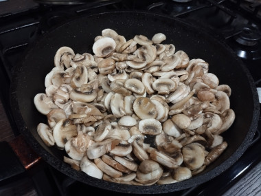 Шампиньоны у меня замороженные, поэтому варила их дольше чем 10 минут.