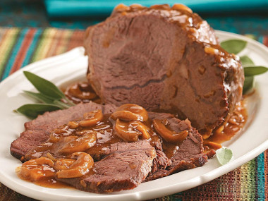 Всем советую приготовить это нежнейшее мясо! Очень вкусно! Томленое мясо говядины в духовке - рецепт очень сочного и полезного блюда из нежирной говяжьей вырезки, которое обязательно придется по нраву всем членам семьи. Такое мясо можно употреблять как в горячем, так и холодном виде, сделав с ним бутерброды. Я подавала с грибным соусом из шампиньонов, получилось восхитительно!