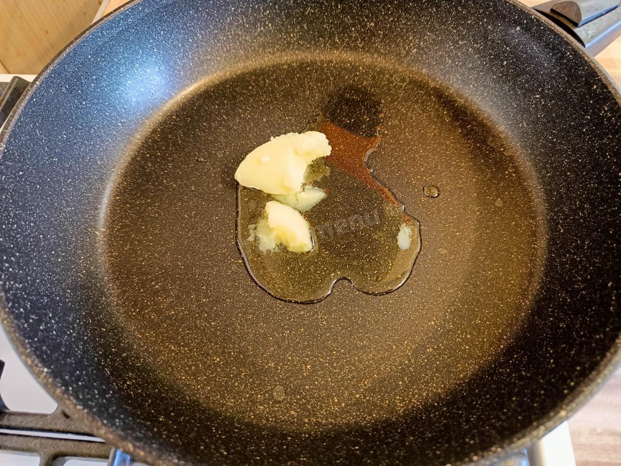 Растопите масло на сковороде с толстым дном. Толстое дно посуды обеспечит равномерное распределение тепла и предотвратит подгорание. О том, как выбрать подходящую сковороду, читайте в статье в конце рецепта. Можно также по желанию приготовить блюдо в казане.