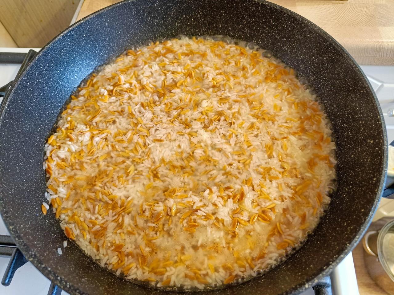 Пасты орзо у меня не было, вместо неё использовала обычную вермишель. Плов готовила, не отступая от рецепта. От себя добавила только зиру.