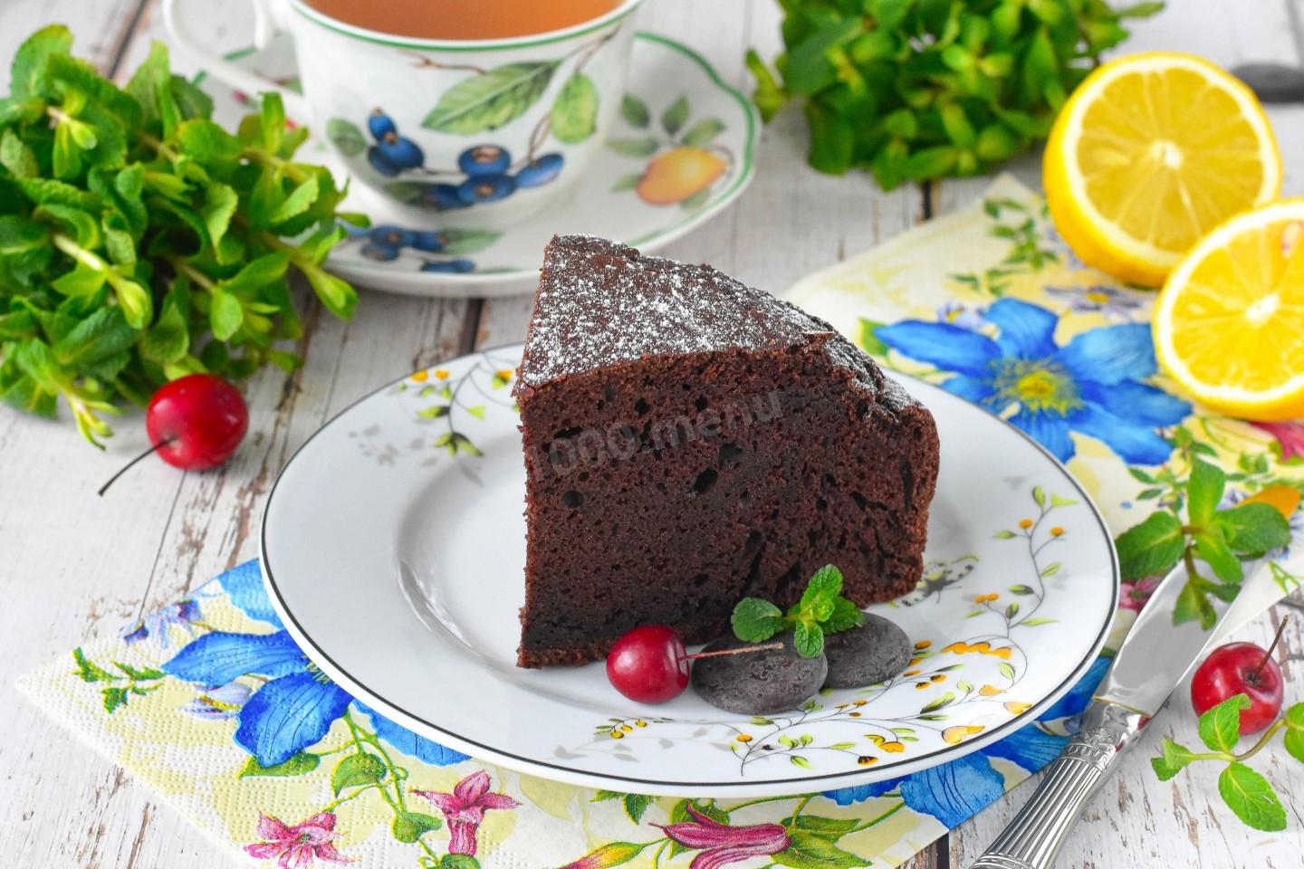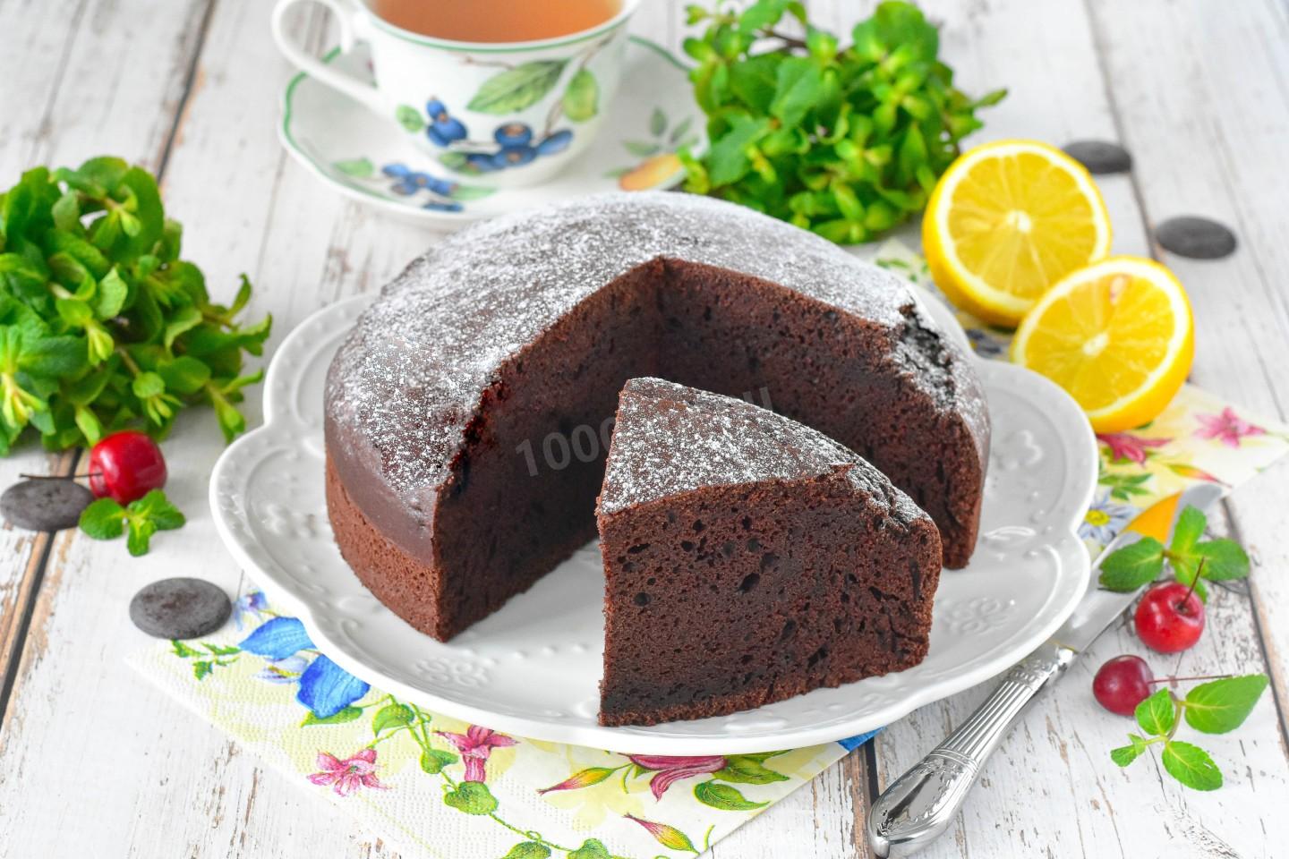 Готовый шоколадный пирог при желании посыпьте сахарной пудрой, полейте растопленным шоколадом или подайте с шариком ванильного мороженого. Очень вкусно разрезать корж пополам и промазать любым джемом или сгущенкой. К такому пирогу идеально подойдут свежие ягоды: малина или клубника оттенят вкус. Приятного аппетита!