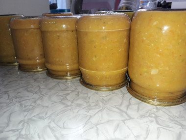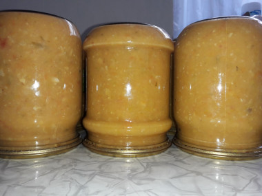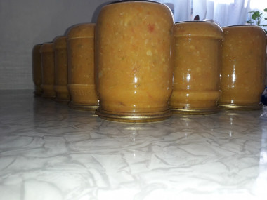 На зиму готовлю вот такую икру из кабачков с томатной пастой.