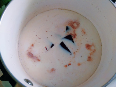 Выливаем молоко с крахмалом к оставшемуся молоку, перемешиваем.