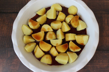 Всыпьте в чашу недоваренный картофель и хорошо перемешайте, чтобы картофель весь покрылся соусом.