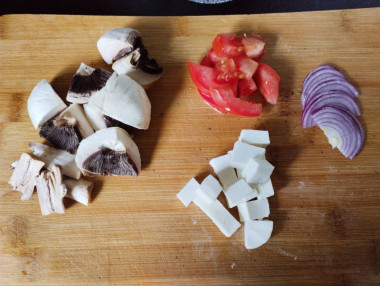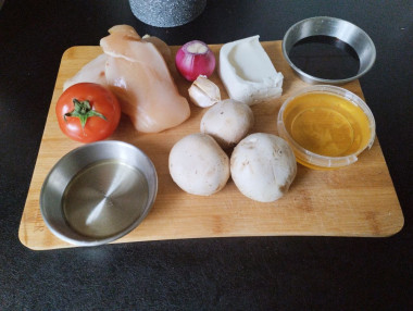 Как сделать салат с грибами, курицей и помидорами Мой любимый? Для начала подготовьте необходимые ингредиенты по списку. Овощную часть можете дополнять или заменять по своему вкусу. Если используете замороженную птицу, предварительно ее разморозьте на нижней полке холодильника. О тонкостях правильной разморозки читайте в статье по ссылке в конце рецепта.