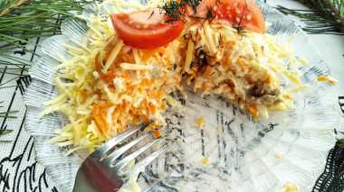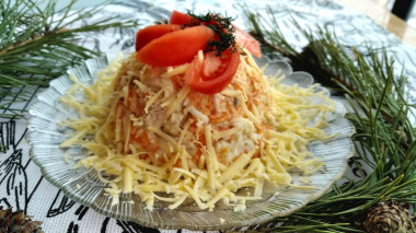 Этот салат очень часто готовят на Новогодние праздники. Его красивый и нарядный вид придаст придаст вашему столу (и не только на Новый год) праздничный вид.