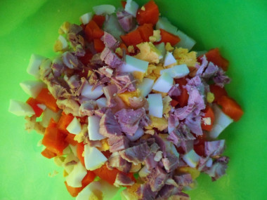 Аккуратно перемешайте все ингредиенты с майонезом (или с тем, чем вы его заменили).