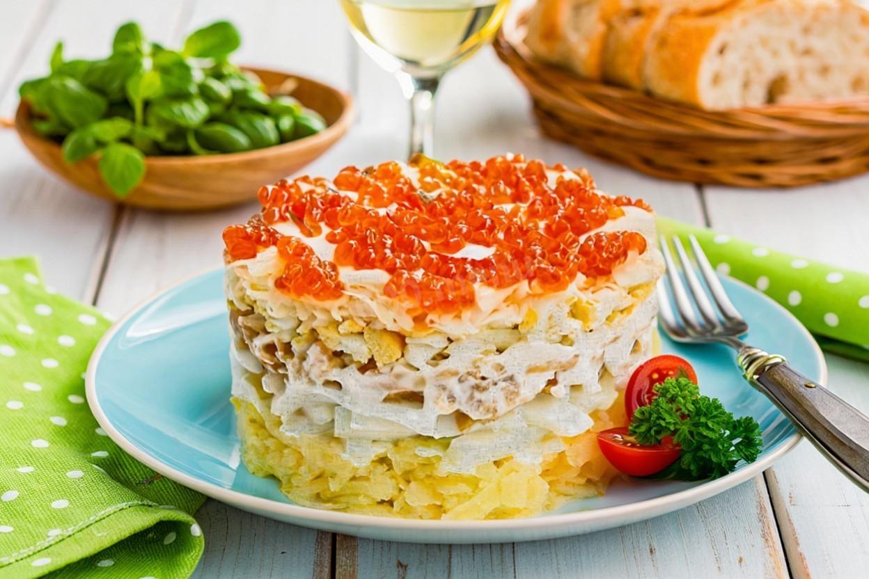 Настоящий царь на праздничном столе! Салат Царский с икрой и кальмарами оправдывает свое название. Он и выглядит достойно, и на вкус поистине царский!!! Согласитесь, еда с красной икрой в ингредиентах не может быть невкусной по определению! Несомненное достоинство этого кулинарного рецепта в его простоте, доступности и неповторимом вкусе! Шикарный рецепт, спасибо!