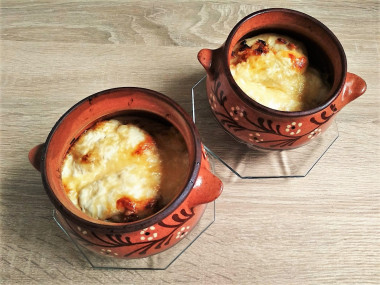 Лучше всего для приготовления вареников в духовке подойдут керамические горшочки. На дно каждого из них выливаем чайную ложку растительного масла (при желании можно положить кусочек сливочного). Далее выкладываем сваренные до полуготовности вареники, прослаивая их поджаренным луком.