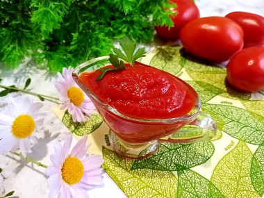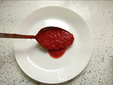 Нашла еще один рецепт. Вместо свежих помидор томатная паста, думаю получится вкусный домашний кетчуп.