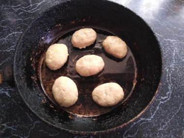Разогреваем сковороду с растительным маслом до горячего состояния. И одновременно включаем духовку на 150 градусов. Смоченными в воде руками формируем продолговатые котлетки и выкладываем их на сковороду так, чтобы они не касались друг друга. Обжариваем с двух сторон до золотистого цвета (около 4 минут с каждой стороны).