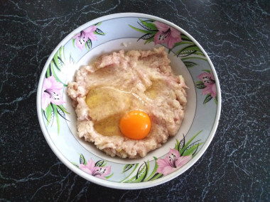 Вбиваем в него яйцо, добавляем соль, молотый перец и любые специи по вкусу. Перемешиваем фарш со всеми ингредиентами до однородности. Для лучше соединения продуктов можно немного помешать вилкой, а потом руками.