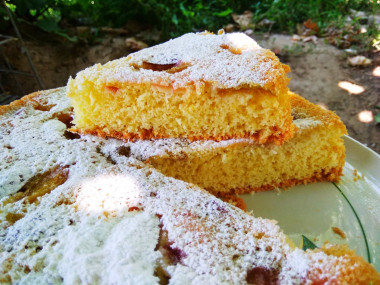 Классный рецепт пирога мз слив! Слив в этом году много, в сыром виде уже не хочется) Пирог готовится проще простого, без заморочек. Зато как вкусно получается! Бисквит воздушный, легкий, пористый, просто невесомый. Кстати я не смазывала маслом бортики формы, благодаря этому бисквит высоко поднялся. Я так выпекаю бисквитные коржи для торта. Сливы по сравнению с тестом более тяжелые, даже в нарезанном виде почти сразу утонули и когда пирог испекся, я его перевернула вверх дном. Как раз все сливки оказались сверху. Присыпала сахарной пудрой, так вкуснее и смотрится симпатично) Шарлотку со сливами я приготовила детям для пикника во дворе. Спасибо за рецепт!