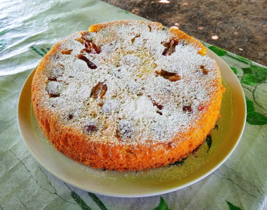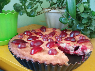 Тесто нежное и воздушное, просто тает во рту. Сливы порезала очень мелко, но часть все равно осела на дно, это стоит учитывать. Я добавила кислые сливы, получился очень интересный контраст с нежным и сладким тестом. Сверху добавила немного винограда. Всем советую!