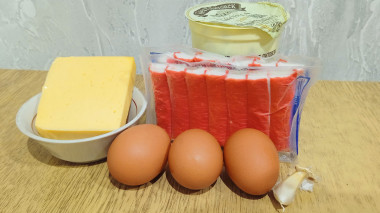 Как сделать рулетики из крабовых палочек на праздничный стол? Подготовьте необходимые ингредиенты.
