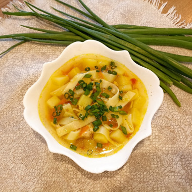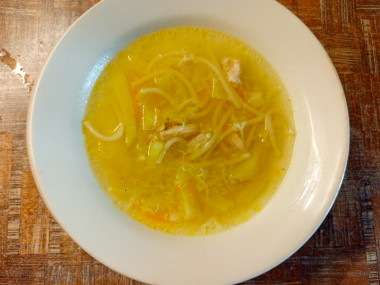 Увидела название "Кудрявый суп с яйцом" и решила, как же наш обед без "кудрявого" супа? Конечно, надо приготовить. Тем более, что всё быстро и просто, как я люблю. От курицы взяла "запчасти", оставшиеся от разделки целой тушки. Мне нравится варить из них бульон, варится недолго, получается золотистый, наваристый, и с мяском. Вместо вермишели взяла лапшу, не оказалось в доме вермишели. Остальное все по рецепту. Супчик получился то, что нужно. Сытный, яично-куриный, ароматный, в общем, красота и вкуснота! Спасибо автору за рецепт, рекомендую, готовьте с удовольствием!