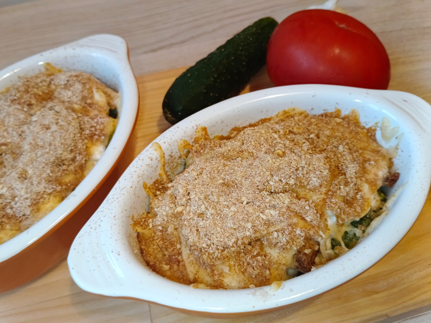 Для того, чтобы понизить калорийность блюда, курицу можно обжарить либо на сухой антипригарной сковороде, либо вообще оставить её без предварительной термообработки. То есть в форму можно выкладывать куриное филе в сыром виде. Всё равно получится вкусно.