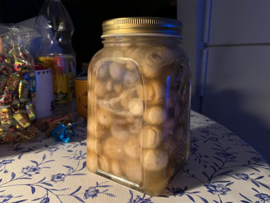 Ещё здорово, что килограмм шампиньонов это - ровно литровая банка со всем маринадом.
