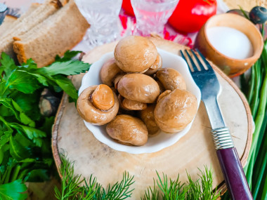На закуску такие маринованные грибочки, то что нужно. Да и в салат добавить можно... Я знаю еще один классный рецепт грибной закуски - шампиньоны с сыром!