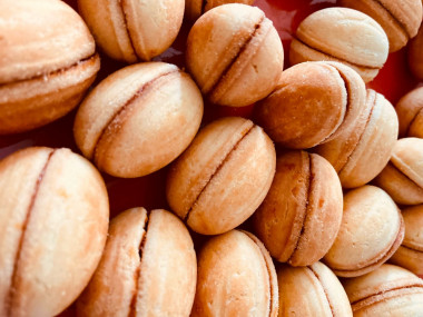 Все выпеченные половинки орешков начиняйте ранее приготовленной и охлажденной домашней вареной сгущенкой. Когда все половинки будут заполнены сгущенкой, останется только соединить половинки между собой. Печенье орешки с домашней вареной сгущенкой готовы! Приятного аппетита!