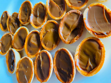 На мой взгляд хотелось бы тесто как то помягче,рассыпчатее,а оно очень хрустящее,но пусть пока постоят, попробую позже с чаем. Внешне орешки со сгущенкой в электрической орешнице выглядят очень аппетитно. Из указанного количества получилось бы 40 орешков, но банки сгущенки хватило только на 28.