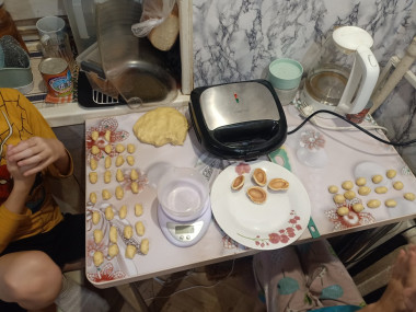 Сделали с сыном тесто, позже присоединилась и дочь. Взяли все ингредиенты точно по рецепту и смешали. Получилось мягкое нежное тесто. Воспользовалась советом в комментарии и стала взвешивать каждый кусочек, а дети лепили овальчики. Получилось очень много, банки сгущенки не хватило, завтра пойду еще за одной. Орешки получилось хрустящие, в меру сладкие, а со сгущенкой очень вкусные. Мы много раз делали орешки, подбирали тесто, но выходили то толстые слишком, то мягкие, а хотелось именно хрустящих. Они быстро остывают и не ломаются когда намазываешь сгущеку. Спасибо большое за рецепт 😊😊