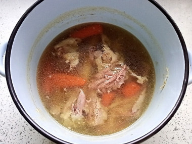 После двух часов варки бульон стал наваристым. Варю бульон всегда на самом маленьком огне, чтобы он остался прозрачным.