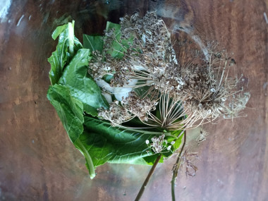 Какая зелень нужна? Возьмите листья и корень хрена, зонтики укропа, листья вишни и смородины. Тщательно их помойте в проточной воде, просушите. По желанию можно использовать еще какие-либо специи для заготовки. Зубчики чеснока очистите от шелухи и пленочек. Указанный набор зелени рекомендован для получения ожидаемого результата, но вы можете что-то убрать или добавить по желанию и возможности.