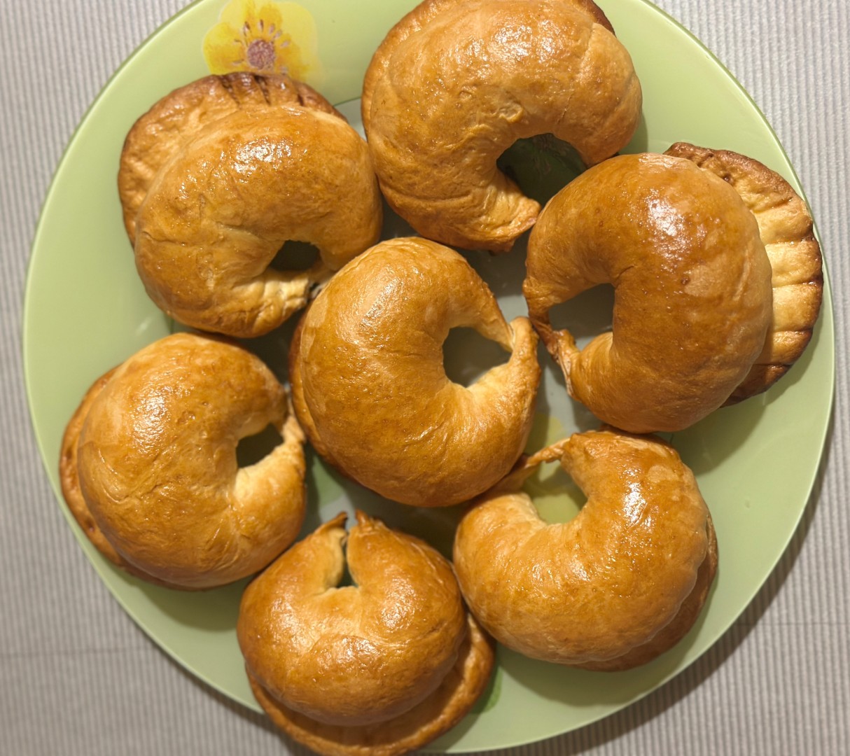 Увидев эти красивые булочки, сразу появилось желание их приготовить. Делала на меньше количество, спасибо сайту- все можно пересчитать под свое количество продуктов) опара подошла хорошо, тесто за час тоже поднялось замечательно. Единственной проблемой для меня это стало нанесение полосок 😂 они почему-то сразу пропадал , тесто распрямлялось. Честно скажу белки взбивать не захотела, а молотый миндаль просто смешала с вареной сгущенкой 🤗 свернула такой ракушкой и смазала яйцом с молоком. Булочки получились вкусными, пышными, но кажется я все же переложила муку, потому что утром (а готовила вечером) ободок булочек был «дубовый». Поэтому разогрела в микроволновке 30 секунд, и они опять стали мягкими. Спасибо Марии за красоту и вкусноту 🔥