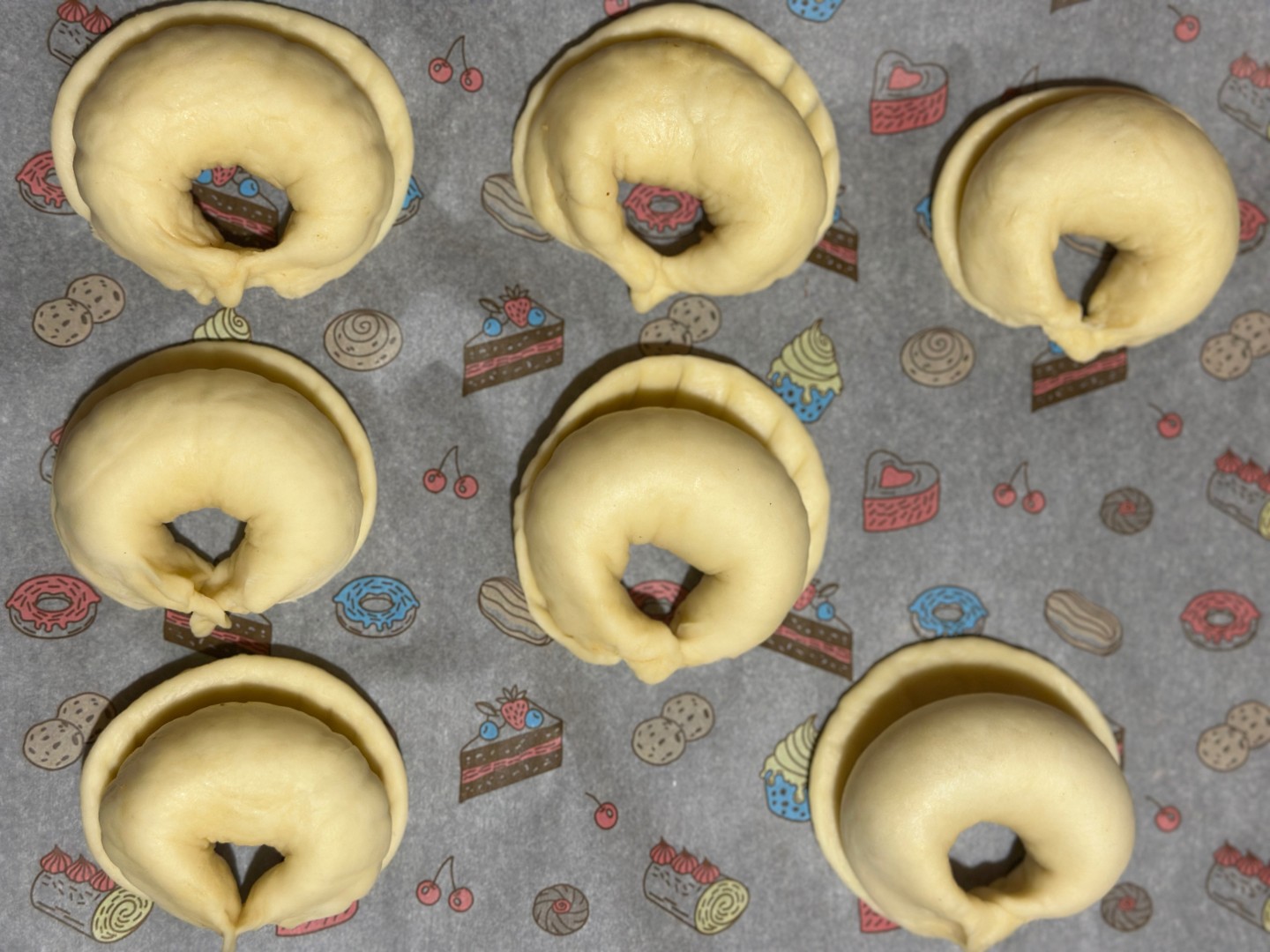 Готовое тесто обомните и разделите на 12 равных частей. Сформуйте из кусочков шарики и оставьте под пленкой еще на 10 минут. Включите духовку на 180 градусов.Шаг 12: