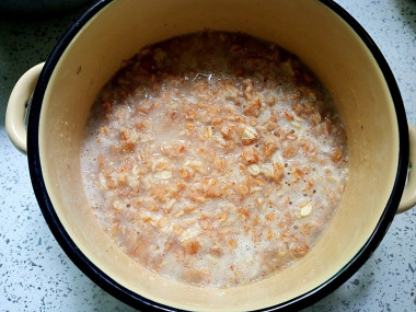 Возьмите сотейник с толстым дном, влейте в него воду. Поставьте на огонь и дождитесь закипания. Посолите по вкусу. Всыпьте хлопья и размешайте их. Убавьте огонь. О том, как выбрать кастрюлю для варки читайте в статье, ссылка под рецептом.