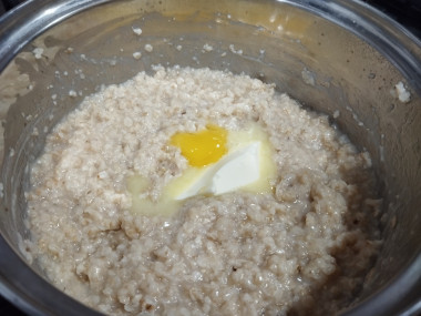 Готовую кашу выключите и положите в нее сливочное масло. Немного подождите, чтобы каша не была обжигающе горячей и добавьте мед. Перемешайте.