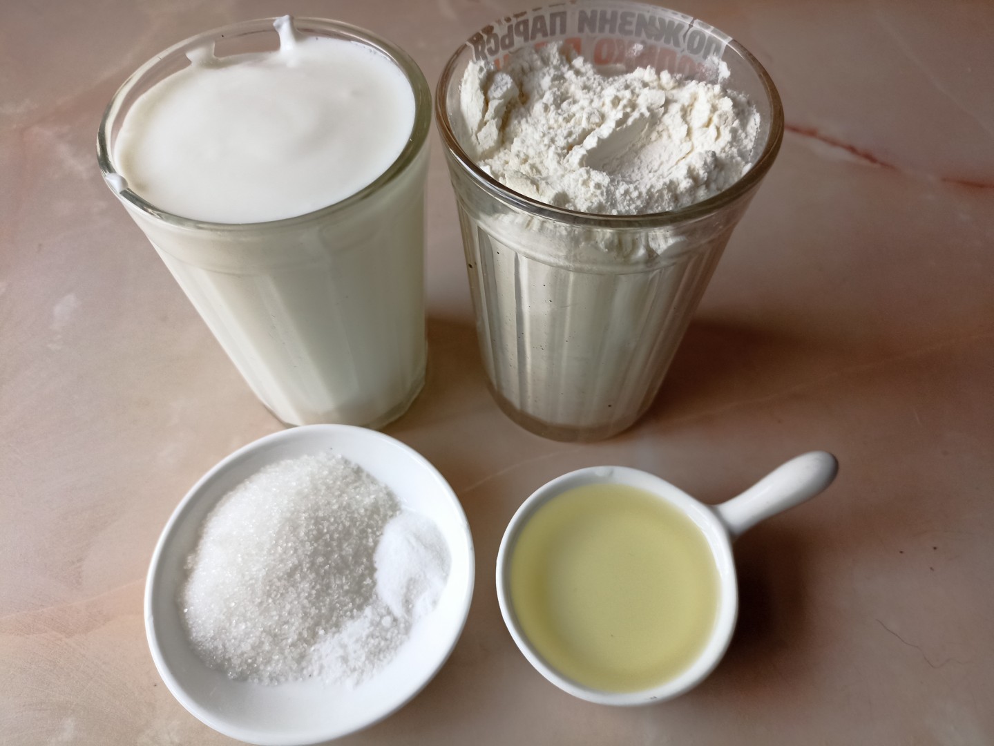 Как сделать лины на кефире без яиц? Подготовьте все указанные ингредиенты. Кефир можно взять любой, я беру 1 %. Его лучше предварительно достать из холодильника, чтобы все ингредиенты сильно не отличались по температуре между собой. Муку предварительно просейте. Включите кипятиться воду. Разные тонкости приготовления блинов вы узнаете из статьи в конце этого рецепта.Шаг 2: