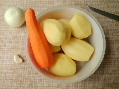 Картофель и морковь помойте и очистите от шкурки. Промойте ещё раз и обсушите. Если картошка готовится для семейного ужина можно её просто нарезать на пластины, для более эффектной подачи можно использовать рефлённый нож (я такой и взяла). Морковь порежьте на кружочки.