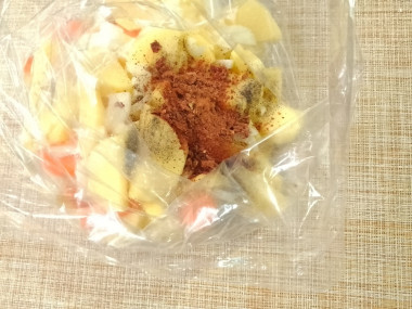 Все необходимые продукты и приправы смешала в рукаве и запекала 40 минут.