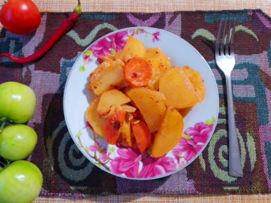 Получилось вкусно! Томат придал картошке интересный цвет и приятную кислинку.