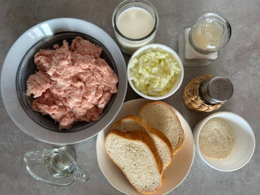 В глубокую миску положите мякиш белого хлеба или батона, залейте его холодным молоком. Оставьте на 15 минут для разбухания.