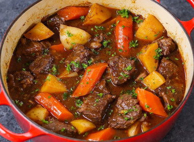 Мясо тушеное с овощами в духовке - для меня беспроигрышная классика. Нежное мясо говядины, протушенное до мягкого разделения каждого кусочка, удачно дополняется восхитительным соусом из картофеля, моркови и лука. Идеально даже без гарнира! Спасибо автору, что напомнили об этом способе приготовления, давно так не готовила мясо.