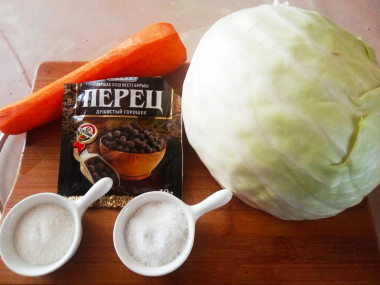 Как заготовить капусту в литровых банках на зиму? Подготовьте необходимые ингредиенты. Белокочанную капусту берите спелую. Спелость и сорт имеют большую роль, для квашения обычно берут зимние сорта капусты, которые обладают крепостью и достаточной сладостью, такая капуста не станет мягкой при правильном соблюдении технологии засолки. Соль берите крупнокристаллическую, не йодированную.