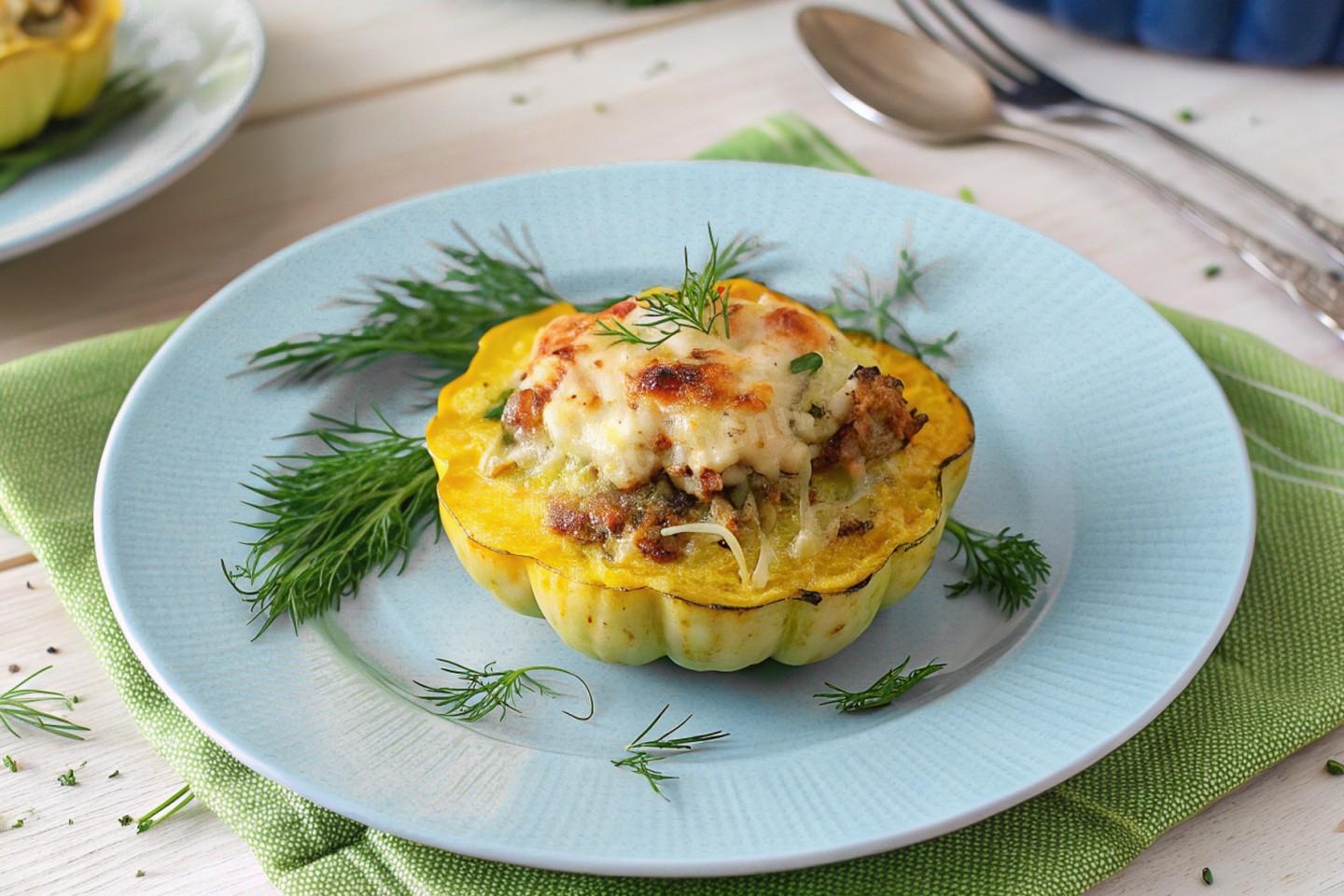 Подавайте запеченные патиссоны с фаршем сразу после духовки, пока они не остыли. Обильно присыпьте их мелко рубленной свежей зеленью: укропом, петрушкой или кинзой. Зелень не просто украшает блюдо — она добавляет яркий свежий акцент, оттеняя насыщенный вкус запеченной начинки и нежного патиссона. Это сочное, ароматное и очень сытное угощение, которое понравится всем! Приятного аппетита!