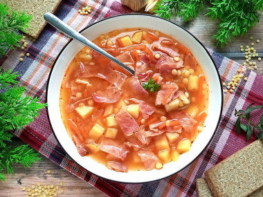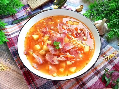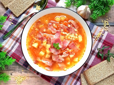 Этот вкуснейший супчик нам с дочкой очень понравился! У него такой аппетитный аромат обжаренного бекона и специй! Кускус немного разбух, стал нежным и впитал все разнообразие вкусов этого блюда. Теперь хочу попробовать сварить суп с крупой более мелкого калибра.