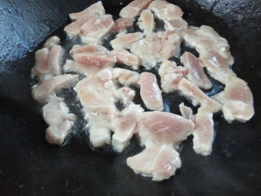 Выберите кастрюлю с толстым дном для приготовления. Налейте растительное масло в кастрюлю и нагрейте его. С выбором кастрюли и масла для жарки помогут статьи по ссылкам в конце рецепта. Обжарьте кусочки бекона до готовности, постоянно помешивая. Выньте бекон из кастрюли с помощью шумовки.