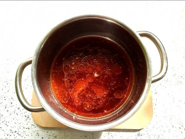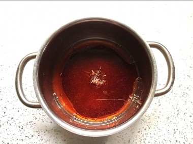 Сначала я не поняла, зачем нужно кипятить смесь. Но в процессе появился такой аппетитный аромат! Теперь стало понятно, что чеснок и специи при нагревании полностью раскрываются. Грела заправку на медленном огне без интенсивного бурления. Кунжутное масло заменила подсолнечным, а яблочный уксус белым винным.