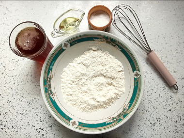 Подготовьте необходимые ингредиенты для кляра. Пиво можно использовать как темное, так и светлое. У меня темное пиво.