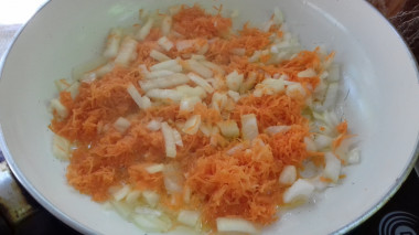 Почистите лук и морковь, промойте овощи. Репчатый лук нарежьте небольшими кубиками. Морковь потрите на средней тёрке, можно воспользоваться измельчителем или мясорубкой.