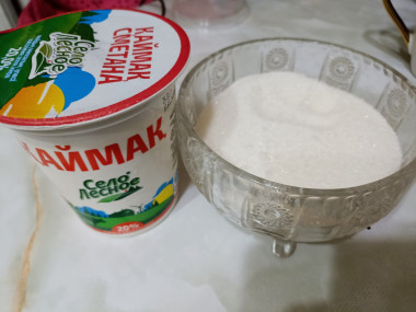 Взбейте сметану с сахаром до пышной однородной массы, на вкус не должны чувствоваться кристаллики сахара.