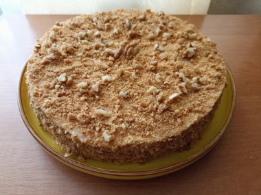 Посыпьте верх и бока торта крошкой. Перед подачей поставьте торт на несколько часов в холодильник, коржи пропитаются кремом, он станет мягче и вкуснее.