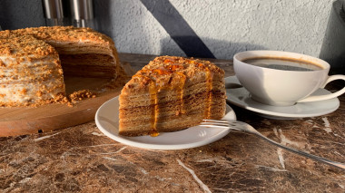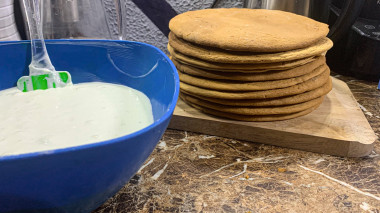 Мне нравится рецепт медовика без раскатки коржей. Крем со сметаной без сливок.