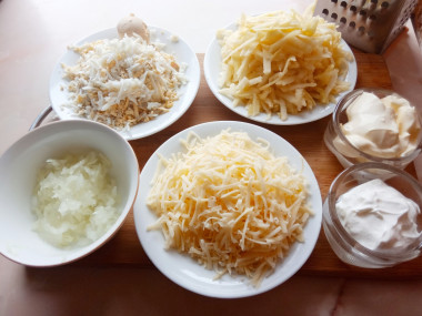 Сыр также натрите, но уже на средней терке, тогда его слой будет воздушным и нежным.
